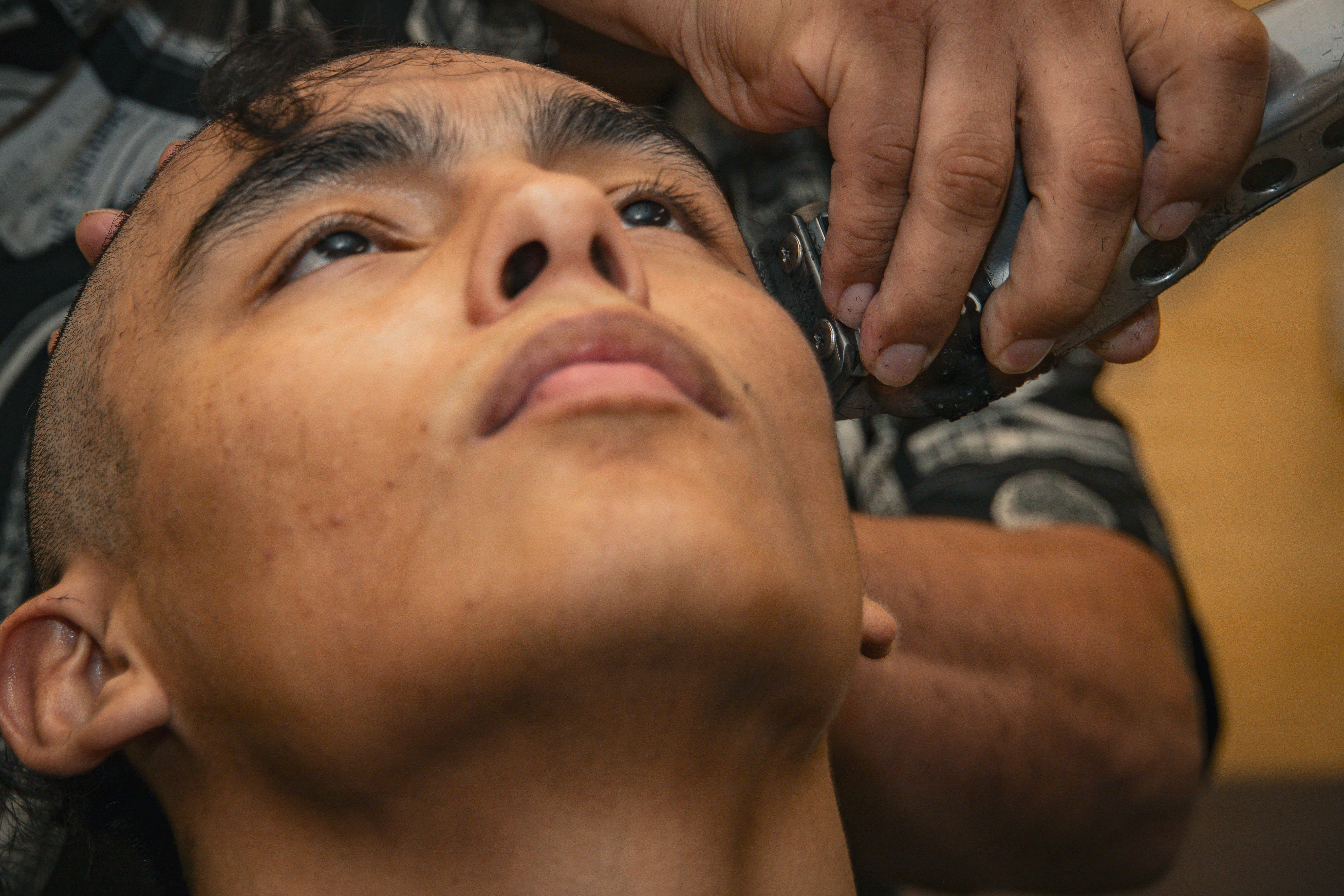 Marine Corps Recruit Depot San Diego, California - U.S. Marine Corps Recruit Jorge Ruiz with Alpha Company, 1st Recruit Training Battalion receives his initial haircut during a receiving event at Marine Corps Recruit Depot San Diego, California, Feb. 09, 2026. During the receiving process, recruits are taken to the United States Organizations for accountability, bussed to the Depot, checked for contraband, given haircuts, make scripted phone calls home, and are issued gear required for training. (U.S. Marine Corps photo by Cpl. Genaro I. Valdez-Sepulveda)