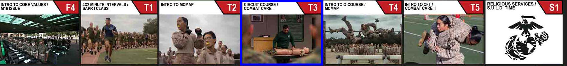 This structured and intense introduction sets the tone for Marine recruit training, emphasizing discipline, physical fitness, and preparation for the challenges ahead.
